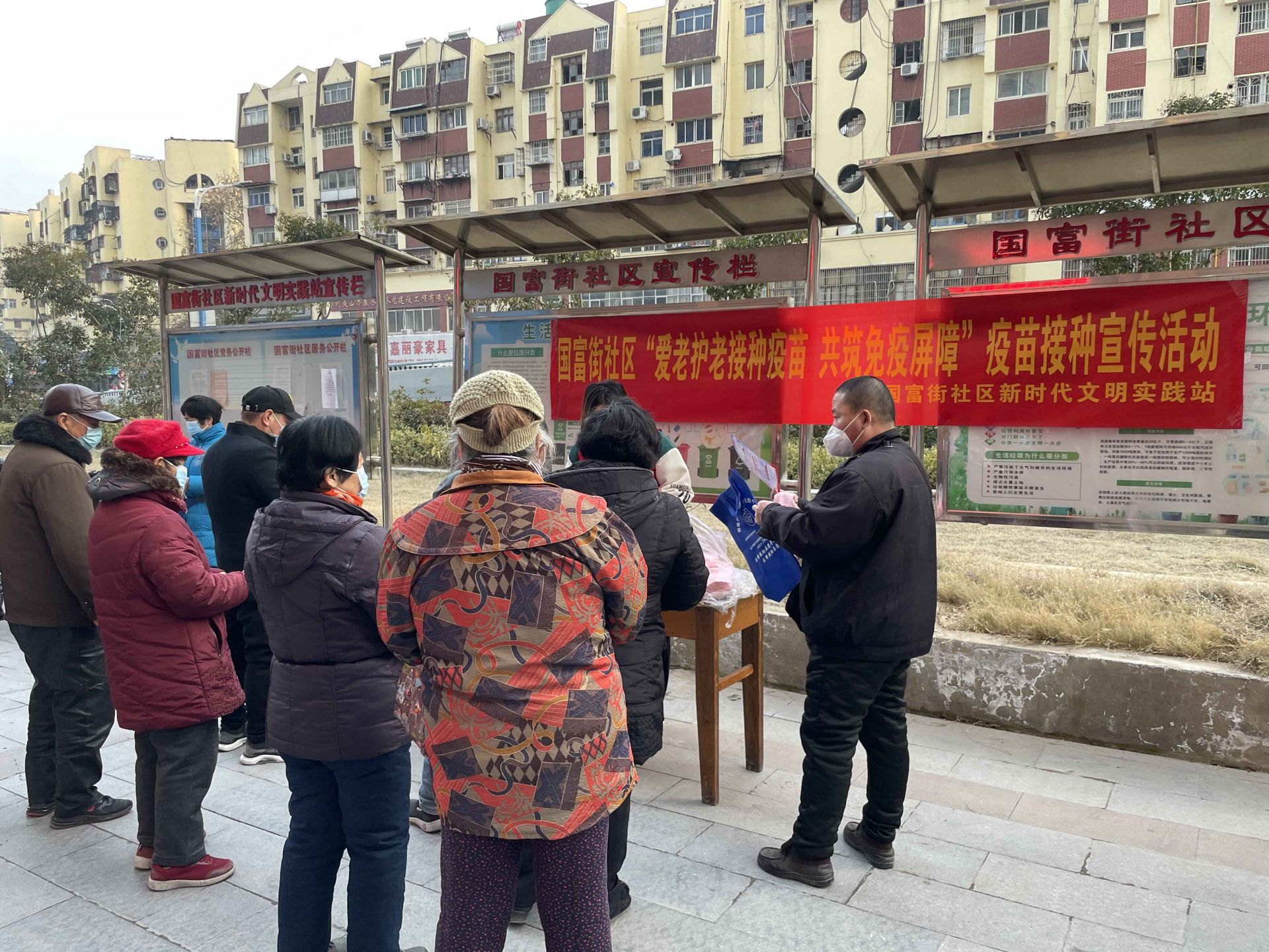 12月29日,国富街社区新时代文明站开展“爱老护老接种疫苗 共筑免疫屏障”疫苗接种宣传活动,打消社区老人顾虑,助力老人顺利接种疫苗。