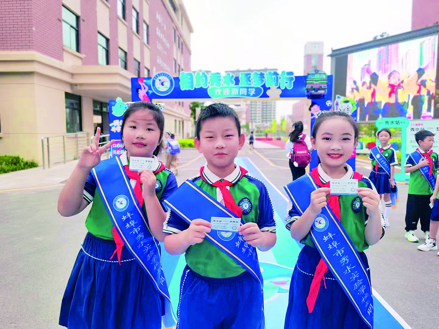 开学第一天,蚌埠市秀水实验学校将开学仪式融合蚌埠历史,以火车票打卡欢迎一年级新生开启人生“新旅途”。 汤洁 摄