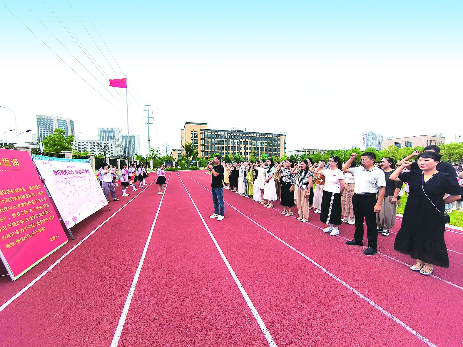 “忠诚党的教育事业,贯彻国家教育方针,履行教师神圣职责……”9月2日上午,蚌埠市星河小学全体教师整齐列队,在鲜艳的五星红旗下开展新学期师德宣誓活动。