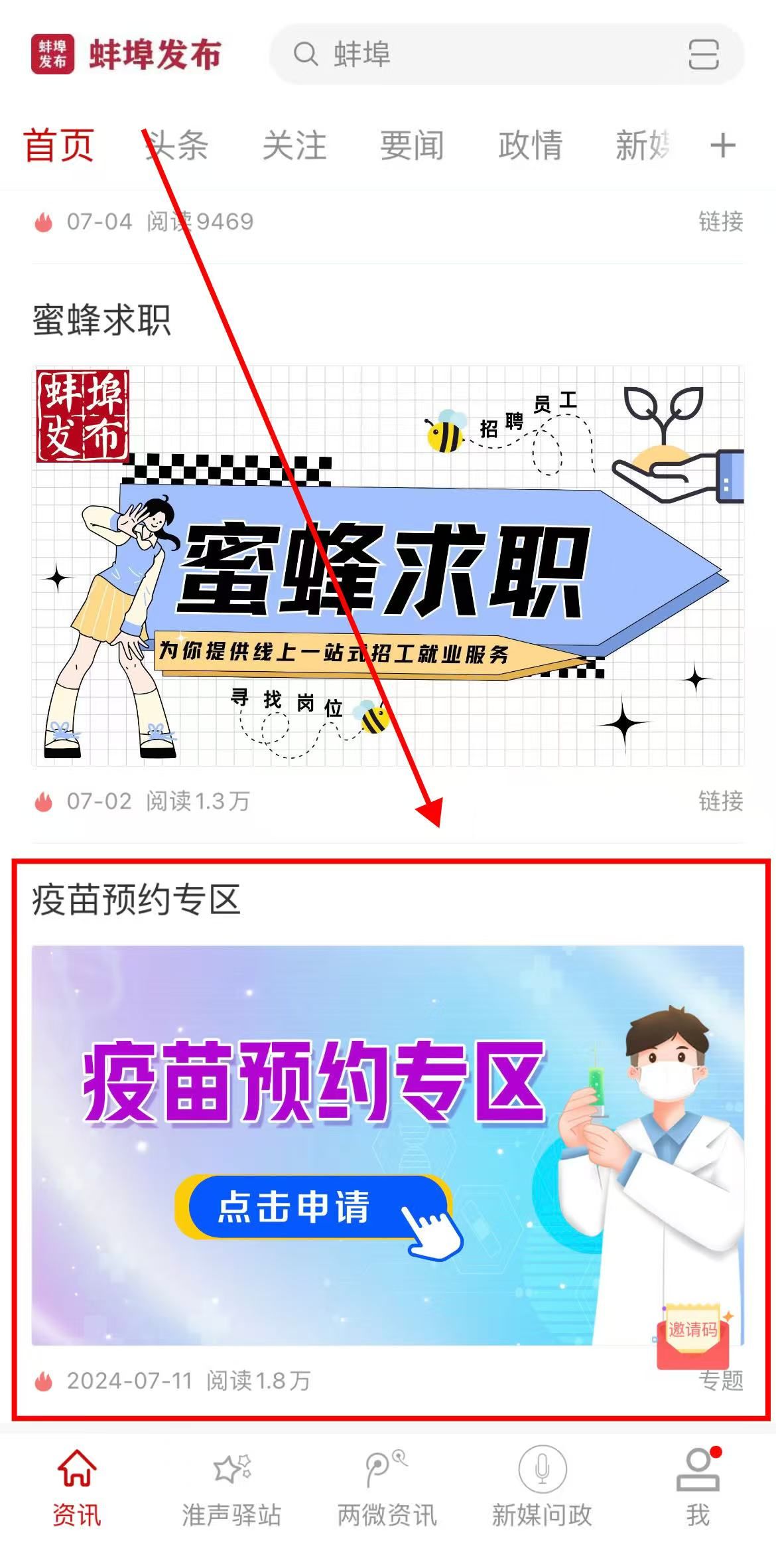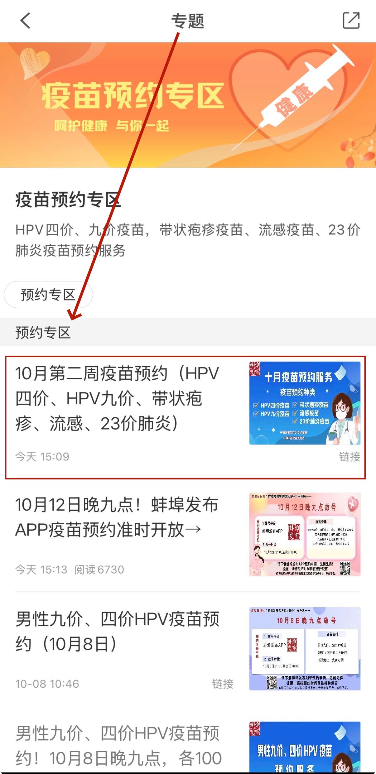 点击进入“疫苗预约专区”