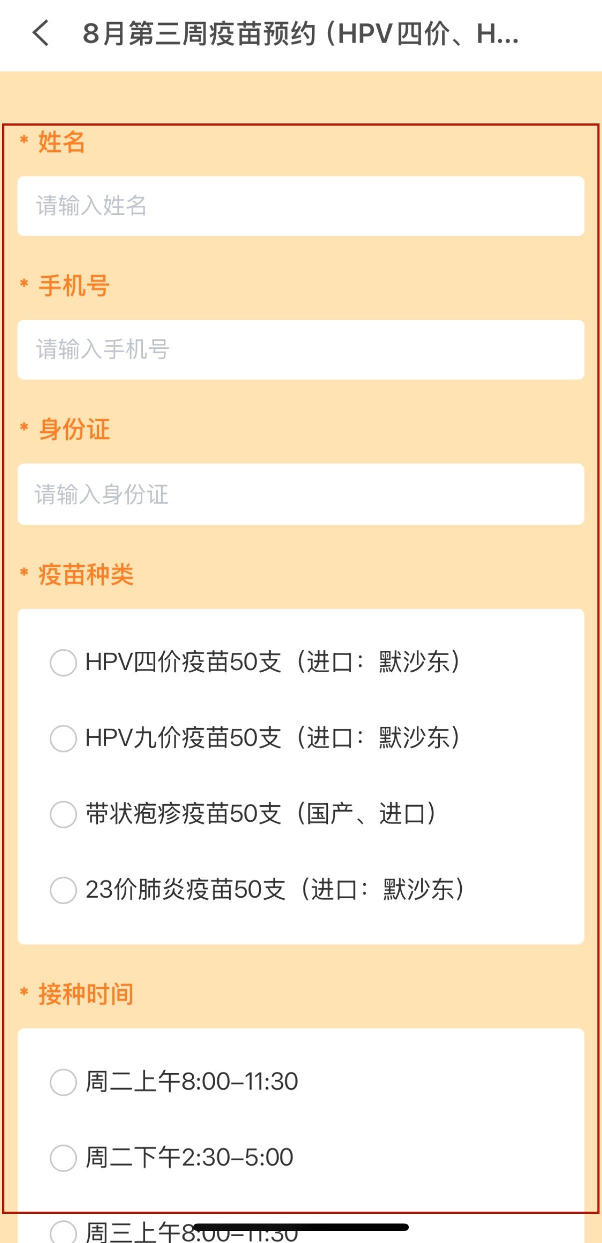 2、这批疫苗预约名额包括50支HPV九价疫苗,50支HPV四价疫苗,50支流感疫苗,50支带状疱疹疫苗,50支23价肺炎疫苗。
