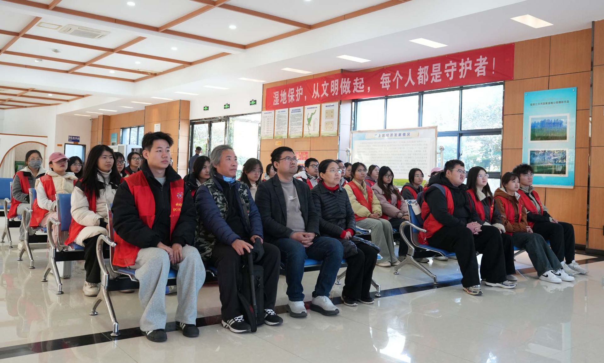 11月29日上午,2025“科普安徽”蚌埠学院项目组联合淮河文化研究中心教工党支部、材料与化学工程学院无机非金属材料工程教工党支部组织大学生志愿者,赴三汊河国家湿地公园开展以“生态保护与鸟类科普”为主题的科技志愿活动。志愿者们集中观看了《守望原生态 胜境三汊河》宣传片,深入了解湿地生态系统的保护成效与生物多样性价值。随后,大家走进湿地核心区,登上观鸟台,实地观测越冬候鸟的种类与行为,并同步开展水质与土壤采样检测,在实践中加深对湿地生态的理解。 秦雨晗 林诺妍 翟文玺摄影报道